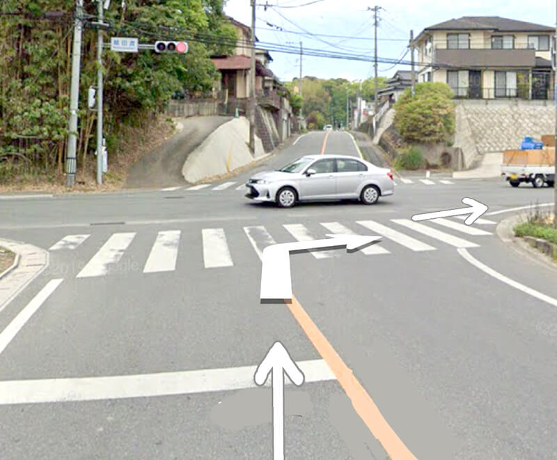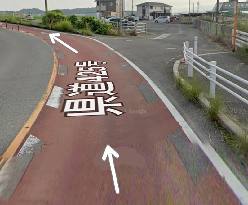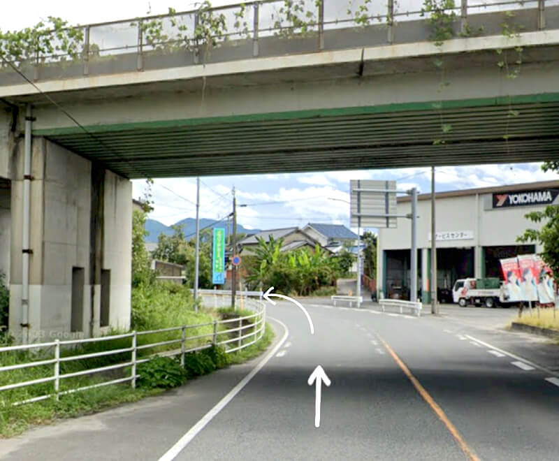 ①JR鯰田駅を背に右折し、県道425号線に入ります。